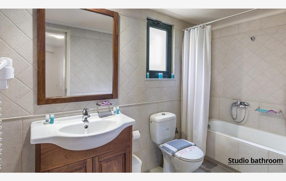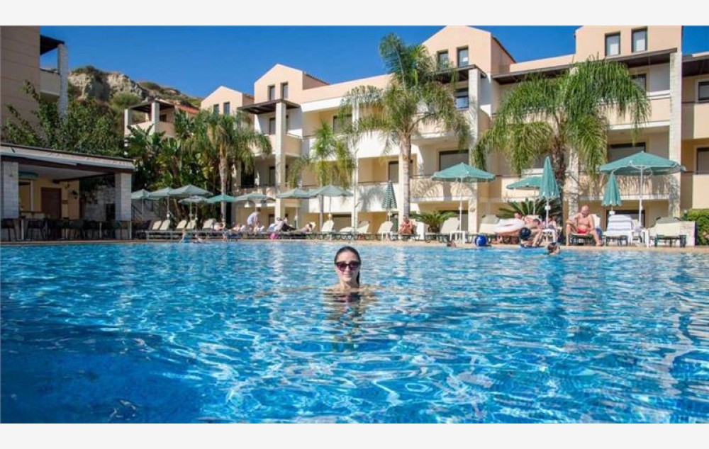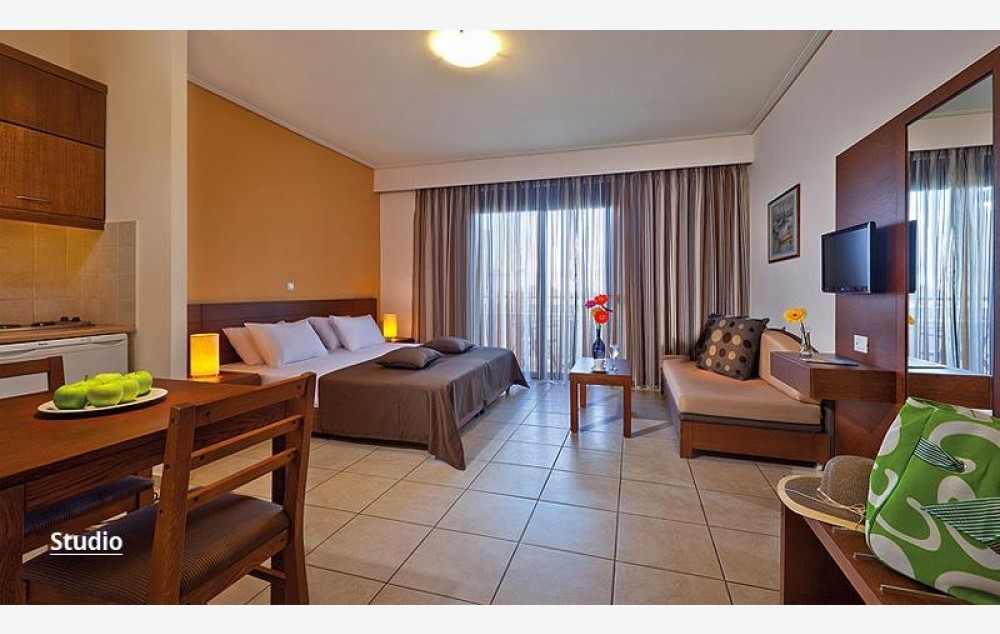 Sadrži ukupno 143 komforne sobe koje mogu biti locirane u prizemlju, na prvom ili drugom spratu. Našim putnicima su na raspolaganju sobe tipa studio i apartman. Mogu biti sa pogledom na bazen ili baštu. Studiji su kapaciteta maksimum dvoje odraslih, dete i beba, ili tri odrasle osobe i beba, sadrže francuski ležaj ili dva standardna ležaja, kao i dodatni ležaj za potrebe treće, a koji može biti pomoćni. U apartman mogu da se smeste do četiri odrasle osobe i beba, tri odrasle osobe, jedno dete i beba ili dve odrasle osobe, dvoje dece i beba. Raspoređeni su duž celog kompleksa, lepo su dekorisani, pružaju udoban smeštaj i sadrže: bračni ili dva standardna ležaja, a za potrebe treće ili četvrte osobe ili deteta pomoćne ležajeve u vidu sofe. Oba sobe tipa studio i apartman su po svojoj osnovnoj strukturi dvokrevetne, dok ostali ležajevi mogu biti pomoćni. Sve sobe sadrže: kupatilo sa kadom ili tuš kabinom, balkon ili terasu, individualni klima uređaj (uključeno u cenu), Sat TV, fen, mini kuhinju, set za kafu/čaj, mini frižider, sef (uz doplatu), Wi-Fi (uključeno u cenu). Bebi krevetac je na usluzi gostima besplatno – obavezna najava prilikom rezervacije.