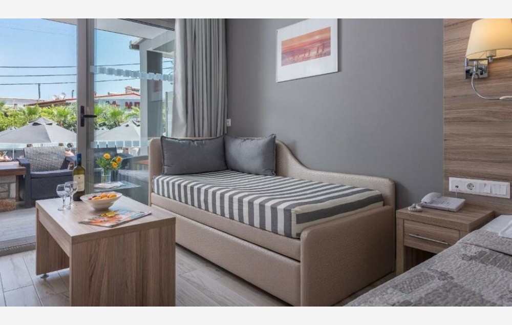 LOKACIJA: Nalazi se u mirnijem delu Haniotija, na oko 250 metara udaljenosti od centra i oko 150 metara od plaže. Izgrađen je u stilu porodičnog hotela, i poseduje kako klasične hotelske sobe, tako i studije sa opremljenom kuhinjom.