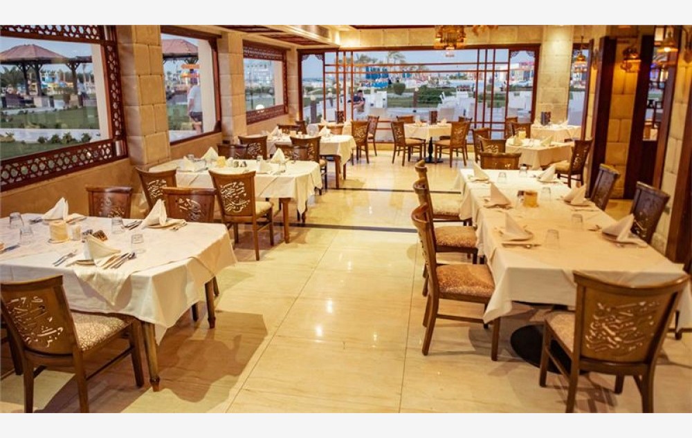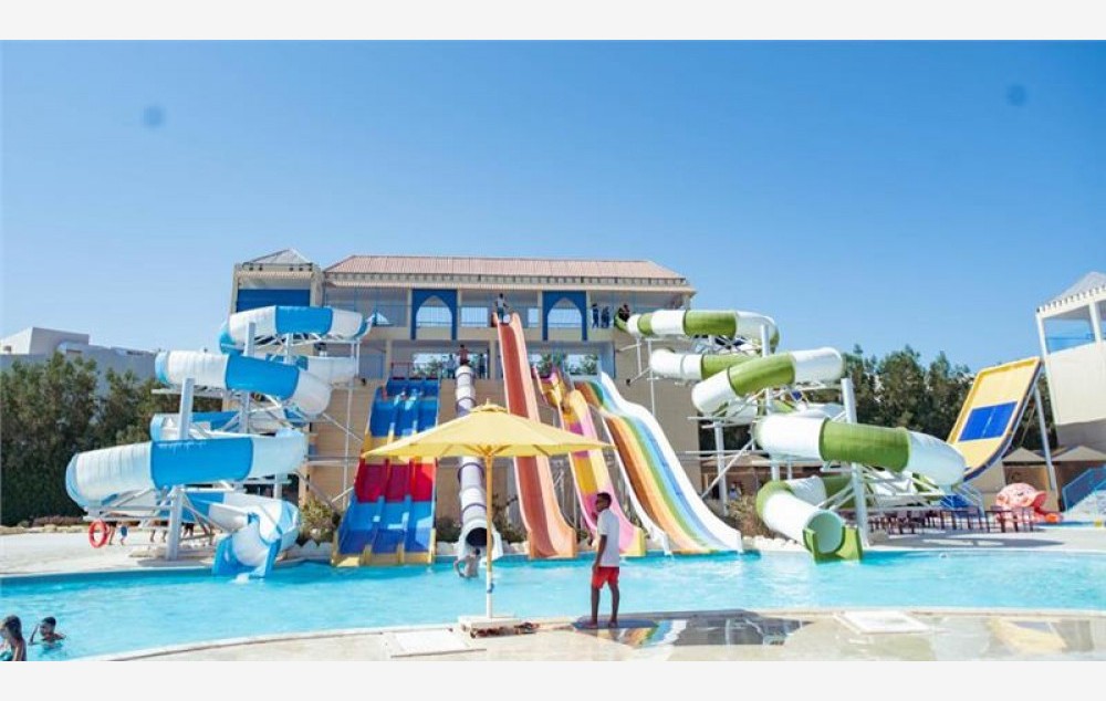 Hotelski sadržaj: Hotel u svom sastavu ima recepciju, glavni restoran, dva a la carte restorana, arapski i italijanski (besplatno korišćenje 1 tokom boravka uz rezervaciju 1 dan ranije), lobby bar, shisha corner (uz doplatu), snack bar pored bazena kao i na plaži, SPA centar, salon lepote, internet centar, teretanu, menjačnicu, bankomat, mini disco klub za decu,igralište, animaciju, prodavnice u sklopu hotela. Gosti mogu da uživaju u 6 spoljašnjih bazena, kao i aqua parku sa 30 tobogana za decu i odrasle.