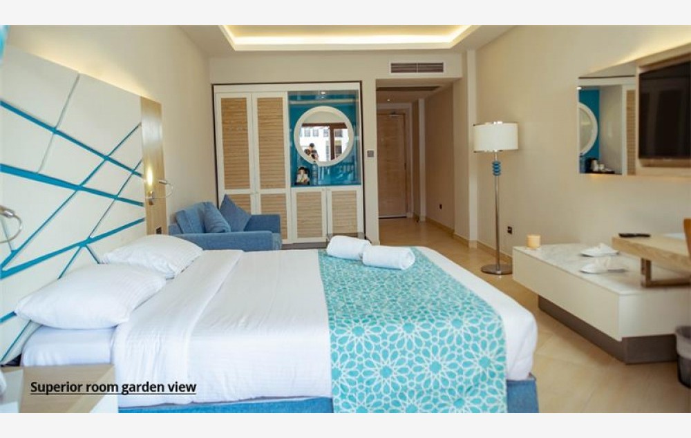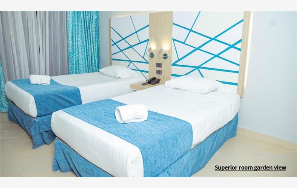 Sobe: Hotel se sastoji od dve zgrade i ima 300 soba različitih tipova. U ponudi su porodične sobe sa pogledom na more, kao i superior sobe sa pogledom na vrt ili pogledom na more.