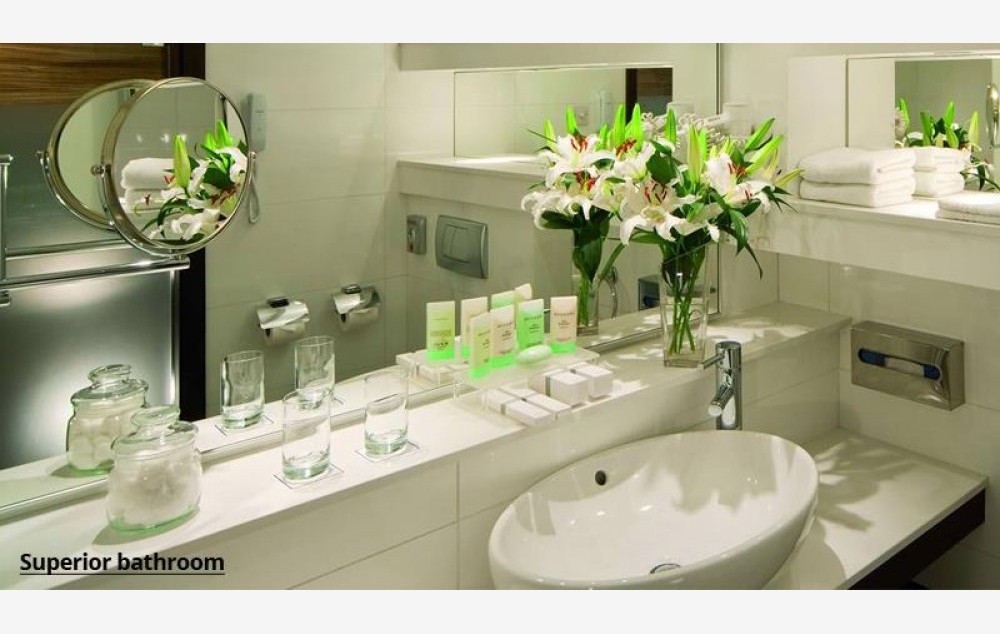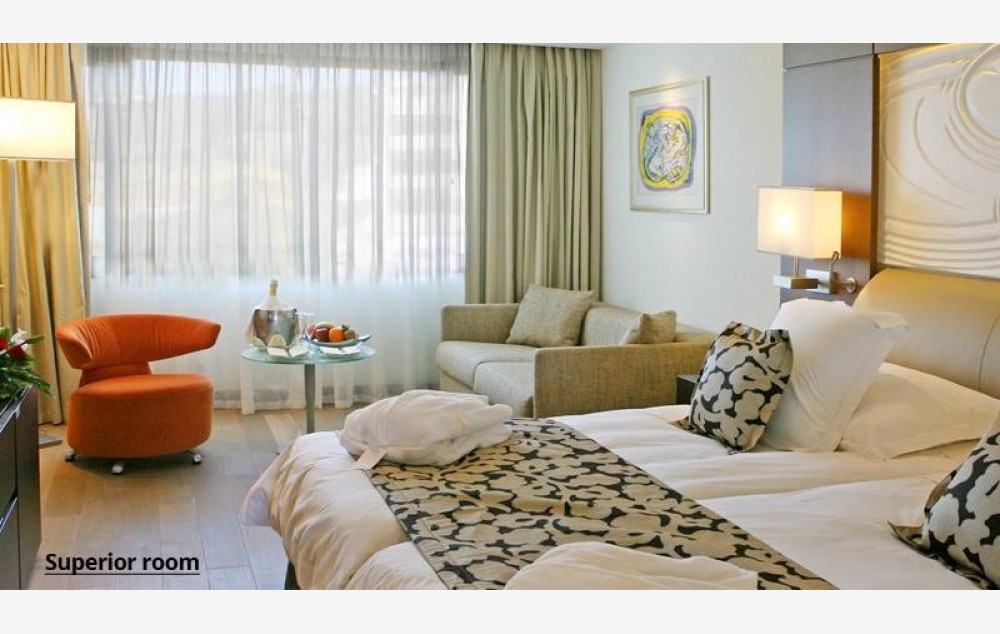 Smeštaj: Sve sobe sadrže klima uređaj, telefon, mini bar, SAT TV, WI FI internet do 50 MB, set za čaj i kafu, sef (uz doplatu), kupatilo, fen za kosu, bademantil, balkon (osim u sobama sa pogledom na baštu ili ulicu). Superior pogled na kopno sobe veličine cca 31m2, maksimum 3 odrasle osobe ili 2 odraslih +2 dece, francuski ili dva odvojena ležaja i pomoćni ležaj na razvlačenje. Superior soba pogled na more velečine cca 26m2, maksimum 3 odrasle osobe ili 2 odrasle + 1 dete, francuski ili dva odvojena ležaja i pomoćni ležaj na razvlačenje.