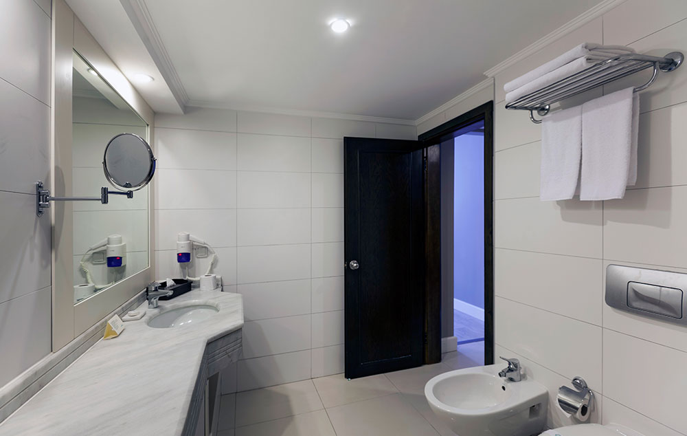 • Corner soba sa pogledom na more površine je 35 m² (za 2+1; francuski ležaj ili dva odvojena kreveta, za dodatnu osobu/dete dodatni pomoćni ležaj),