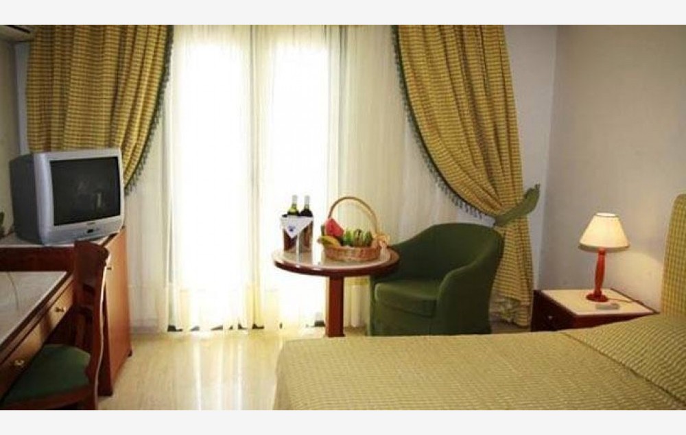 doručak (samoposluživanje, izbor više jela). Postoji mogućnost doplate za polupansion. Večera je u susednom hotelu Mitsis Petit Palais.