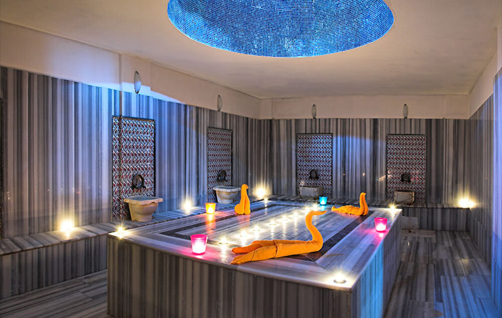 Hotelski sadržaj: recepcija, lobi, otvoreni bazen sa 2 tobogana, restorani, barovi, prodavnice, Spa deo, fitness deo, a la cate restorani, mini-klub (za decu starosti 04-12 godina), dečije igralište, animacija (dnevna i večernja), tereni za košarku, gimnastika, fitness centar, stoni tenis, teniski teren (tokom dana), tursko kupatilo i sauna (uz prethodnu rezervaciju), parking, diskoteka (tri puta nedeljno), wi fi u holu.