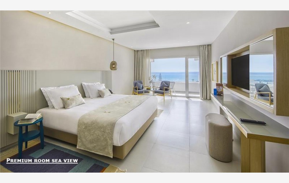 Sobe: premium garden view sobe (cca 36m2) za maksimum dvoje odraslih, francuski krevet ili dva singl kreveta; premium sea view sobe (cca 36m2) za maksimum troje odraslih, francuski krevet ili dva singl kreveta, uz mogućnost ubacivanja pomoćnog kreveta; preminum family sobe (cca 45m2) za minimum dvoje odraslih i dete, maksimum četvoro odraslih, francuski krevet ili dva singl kreveta i kreveti na sprat; premium suite (cca 70m2) za maksimum dvoje odraslih, francuski krevet u spavaćoj sobi, u dnevnoj sobi granitura za sedenje; bungalow sobe (cca 45m2) u prizemlju, za maksimum dvoje odraslih, sa francuskim krevetom i pogledom na more.