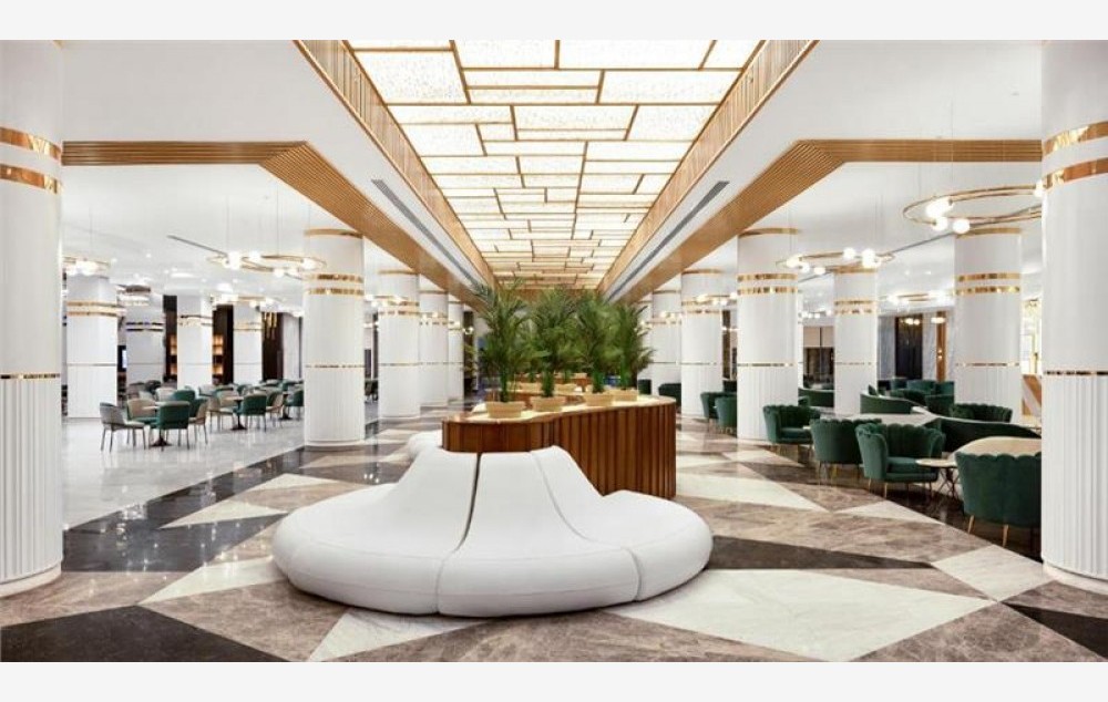 Hotelski sadržaj: Gostima su na raspolaganju recepcija (24 sata), menjačnica, lift, bežični internet dostupan je u svim zajedničkim prostorijama. U svom sastavu hotel ima nekoliko restorana u kojima se služe specijaliteti italijanske, azijske, orijentalne, kineske kuhinje, mediteranske, grčke kuhinje, servis za pranje i peglanje veša, nekoliko spoljašnjih bazena, aqua park sa 2 slajda, dečije igralište, igraonica i dečija animacija. U sklopu je i luksuzni spa centar sa prostorijama za masaže i razne tretmane, đakuzi, saune, tursko kupatilo i teretana, shisha (uz doplatu), suvenirnica, rent-a-car, ostava za prtljag, animacioni program, bankomat, frizer, usluga konsjerža. Kids klub nudi uslugu besplatnog čuvanja dece.