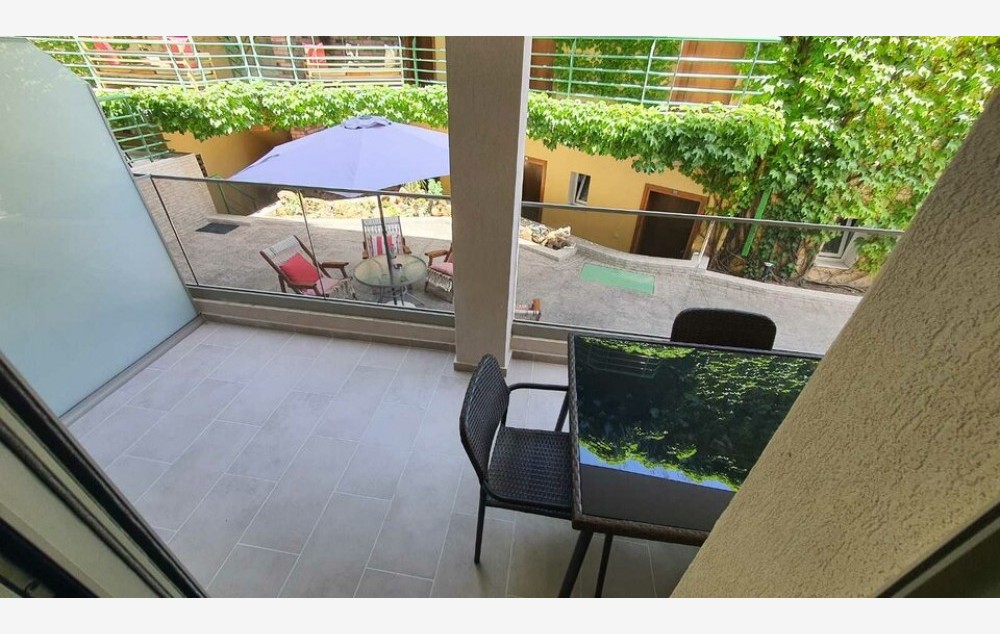 Sobe: Svaka smeštajna jedinica sadrži kupatilo sa kadom ili tuš kabinom, tv, klimu, balkon ili terasu, mini frižider i malu kuhinju koja je opremljena. Dečiji krevetac na upit, besplatan.