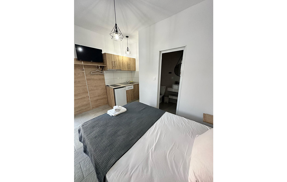 DODATNE KARAKTERISTIKE:Vila raspolaže studijima i dupleks apartmanima, namenjenim za smeštaj od dve do četiri osobe. Studiji su renovirani, I imaju jedan francuski ležaj i krevet na sprat, a apartmani imaju francuski ležaj u spavaćoj sobi, 2 singl ležaja u dnevnoj sobi I kuhinju koja je odvojena od obe sobe. Svi studiji/ apartmani imaju opremljen kuhinjski deo, kupatilo/wc, terasu, TV, WiFi internet