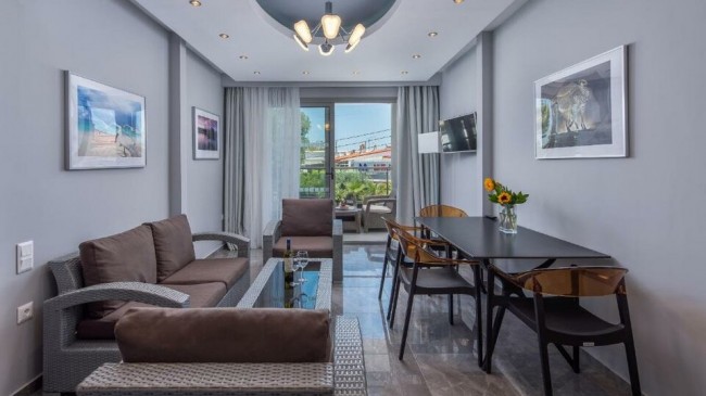 LOKACIJA: Nalazi se u mirnijem delu Haniotija, na oko 250 metara udaljenosti od centra i oko 150 metara od plaže. Izgrađen je u stilu porodičnog hotela, i poseduje kako klasične hotelske sobe, tako i studije sa opremljenom kuhinjom.