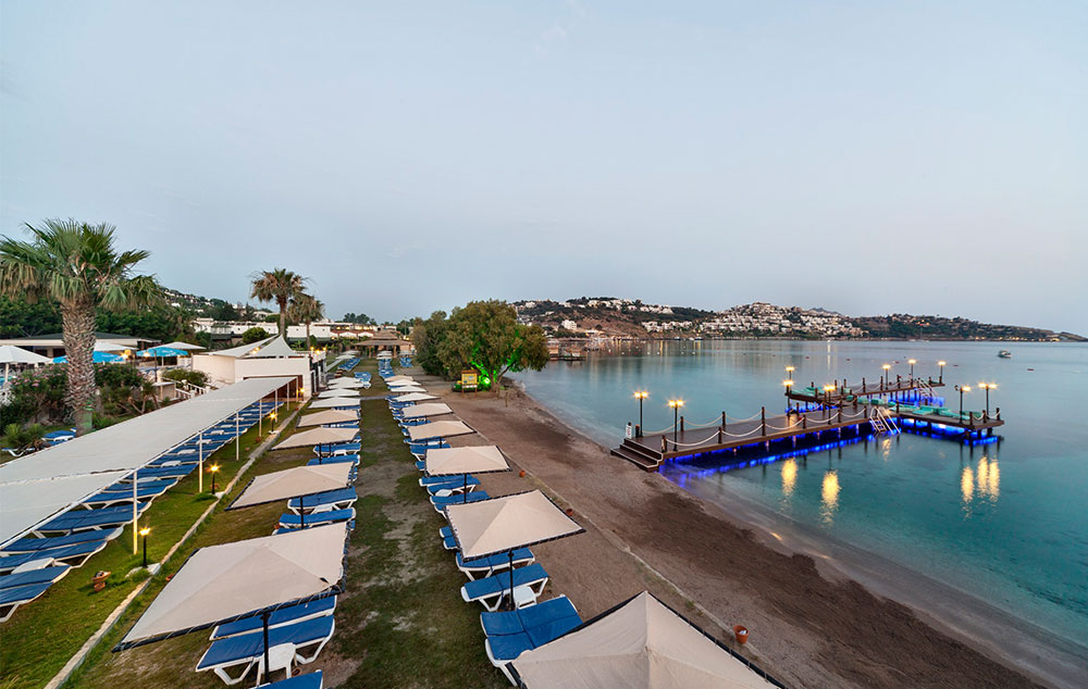 Položaj: nalazi se u mestu Tilkicik, u blizini plaže, na 20km od centra Bodruma i oko 40km od aerodroma Bodrum. Najbliže naselje je mesto Yalikavak na udaljenosti oko 2km od hotela. Plaža je delom peščana, delom sa platoom, suncobrani, ležaljke i prostirke su besplatno pored bazena i na plaži, peškiri su dostupni uz doplatu.