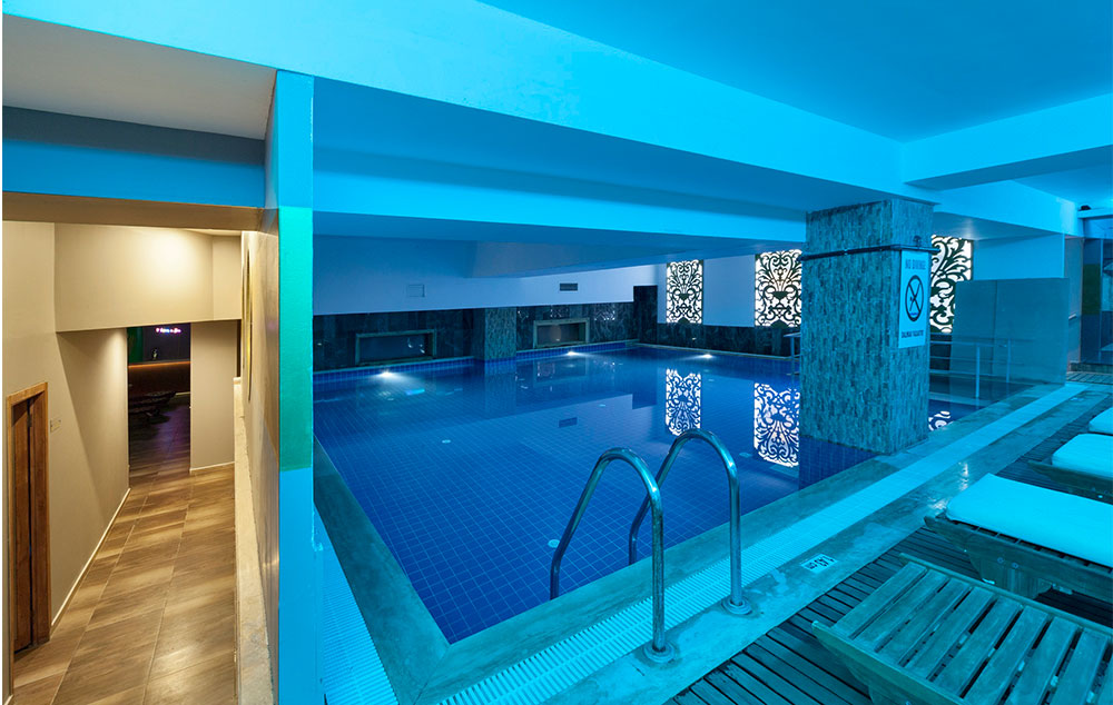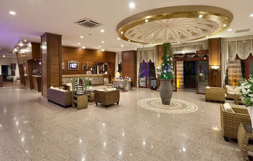 Sadržaj: recepcija, lobi, 2 otvorena bazena (sa delom za decu, u jednom je todogan), zatvoreni bazen, restorani, barovi, kafe, 2 a al carte restorana (u jednom od njih jedanput tokom boravka besplatno uz rezervaciju), disko, bežični internet (besplatan u svim javnim prostorima hotela), spa deo.