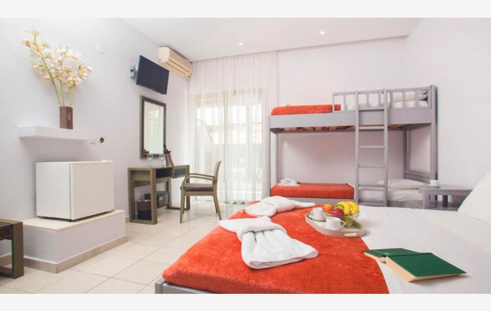 Standardna soba 1/2+2 sa krevetima na sprat – 22 m2, sa bračnim i krevetom na sprat za (mogu da koriste dva deteta od 3 do 11.99 god.)