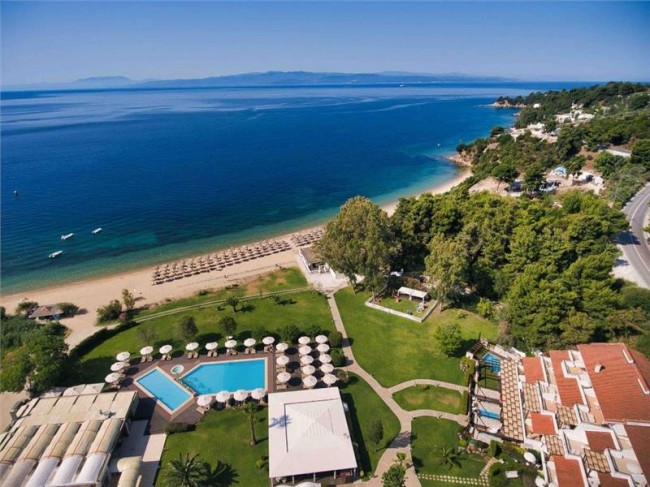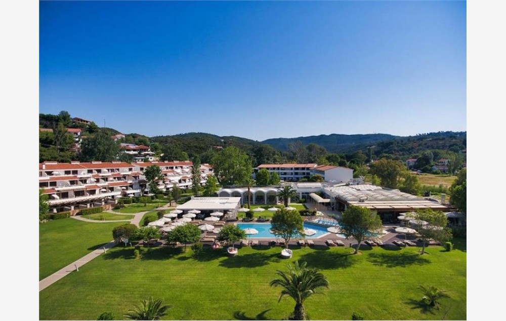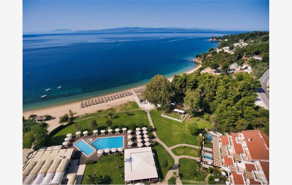 Ovaj hotel sa 5* je jedan od najluksuznijih na ostrvu i nalazi se direktno na peščanoj plaži Agia Paraskeva. Udaljen je 8 km od grada Skijatos i 10 od aerodroma. Preko puta se nalaze taverne i prodavnice. Na 100 metara od hotela je autobusko stajalište. Blizu hotela je mala crkva poscećena Svetoj Petki.