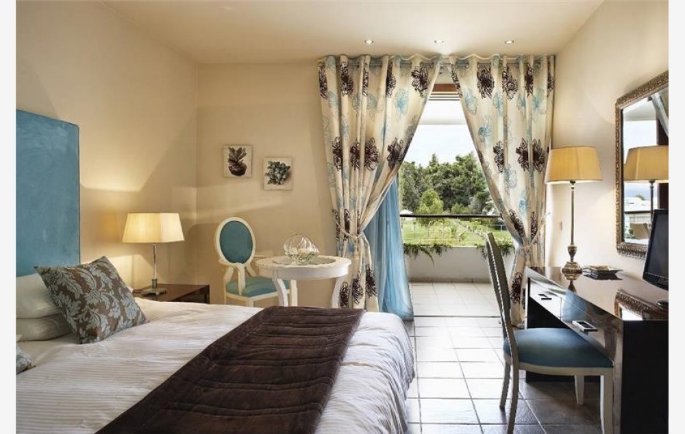 Hotel ima privatnu plažu sa ležaljkama i sunconbranma koji su besplatni za goste, dva otvorena bazena (jedan dečiji), pansionski i tri a la card restorana, tavernu na plaži, bar na bazenu, koktel bar, internet kutak, wi-fi internet u javnim prostorijama, jacuzzi na otvorenom, dečji mini-klub, SPA centar sa salom za fitnes, parking. Peškiri za plažu se dobijaju uz karticu kao depozit za korišćenje.