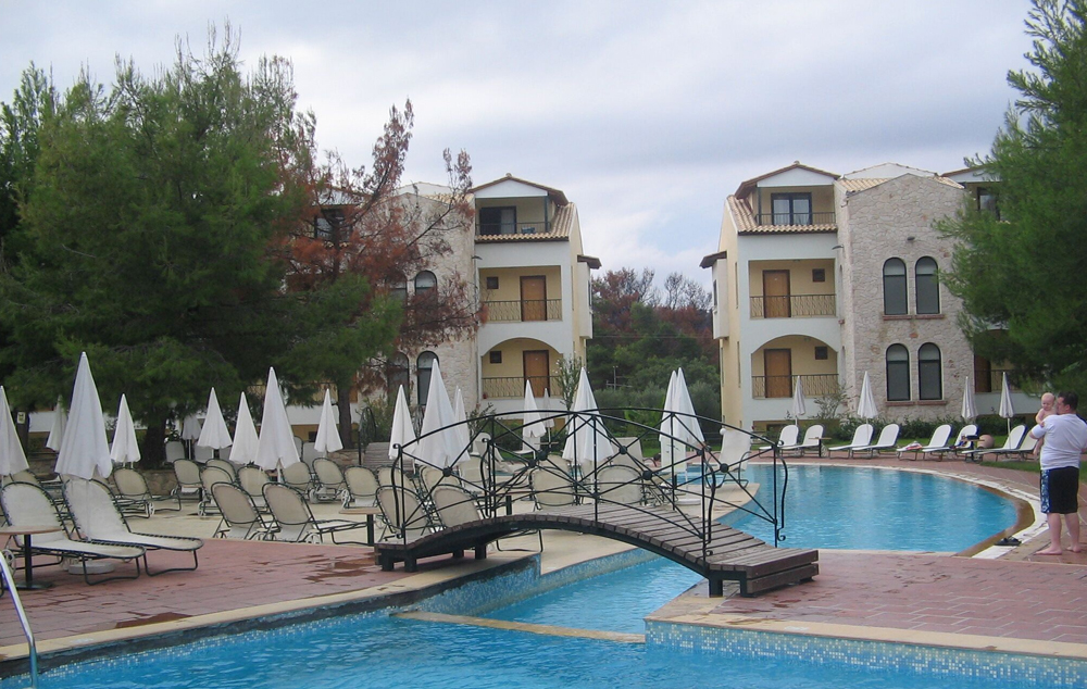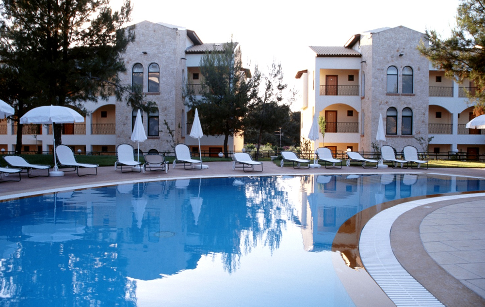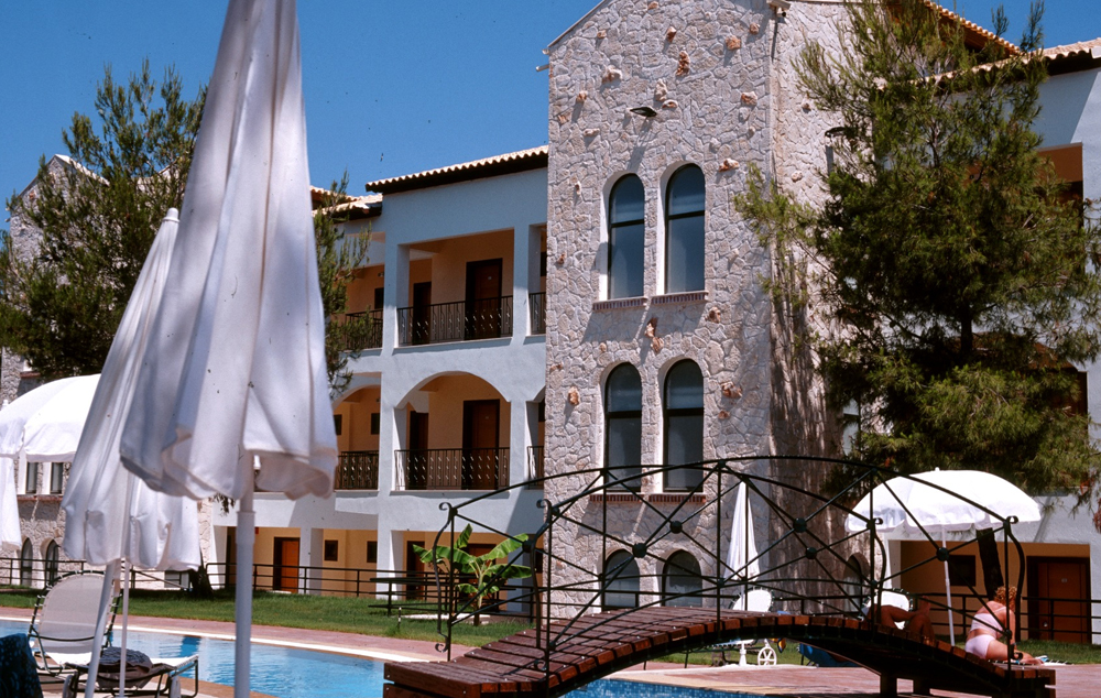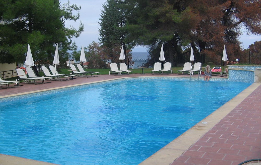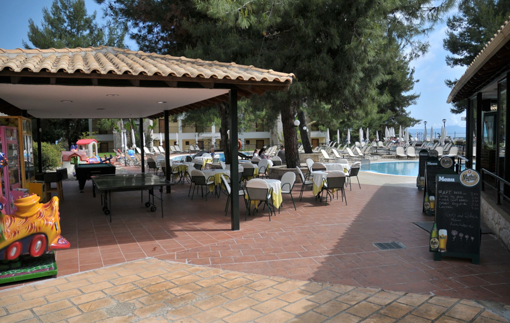 SADRŽAJ: Tri otvorena bazena, hidromasaža, bar pored bazena, bar, kafeterija, sala za konferencije kapaciteta 160 osoba, sala za dečje igre, organizacija grčkih večeri sa živom muzikom jednom nedeljno...