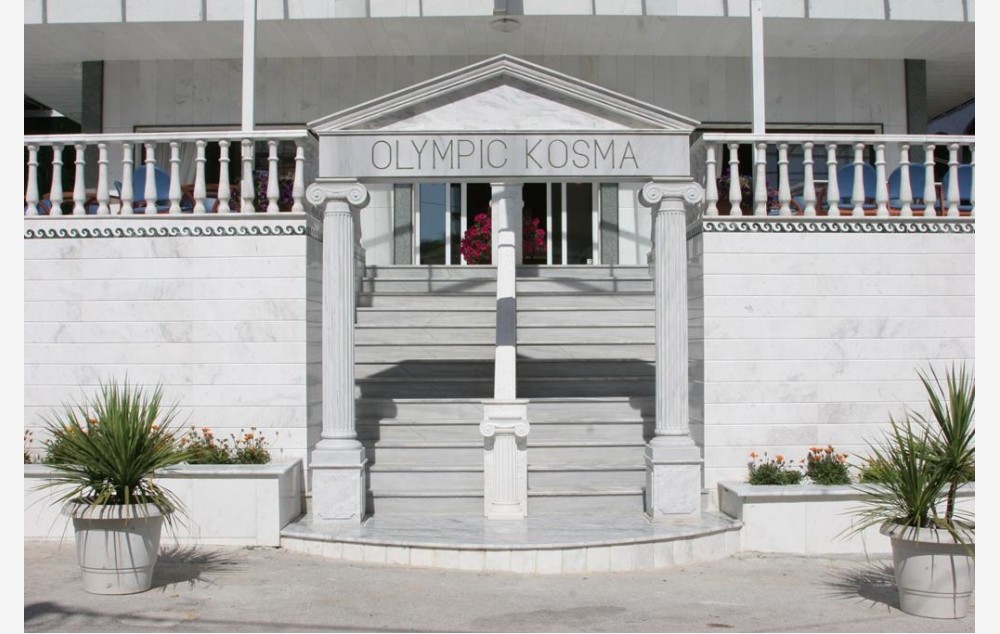 Hotel Olympic Kosma(39.997221N, 23.580923E) se nalazi u mirnom delu Haniotija, udaljen svega 280m od peščane plaže i popularnih plažnih barova. Sa recepcijom koja radi 24h spada u hotel srednje veličine kojeg krasi centralno dvorište sa bazenom okruženim ležaljkama i kafe-barom. Korišćenje bazena i bazenskog mobilijara je besplatno za sve goste hotela. Najmanja dubina bazena iznosi 0,8m a najveća 1,8m. Sobe se prostiru na ukupno četiri sprata a spratnost soba iz naše ponude mogu je od prizemlja do trećeg sprata. Pogled može biti ka bazenu ili bašti. Kvadratura soba se kreće od 17kvm za dvokrevetne do 24kvm za trokrevetne a sve su opremljene klima uređajem, malim hotelskog tipa frižiderom, LCD TV-om, fenom i balkonom. Wi-Fi je besplatan i dostupan je u celom objektu. Na recepciji postoji mogućnost iznajmljivanja sefa uz doplatu na licu mesta a visinu naknade formira hotel u skladu sa željenim brojem dana iznajmljivanja. Hotel posedujei lift čija je specifičnost da staje u prizemlju i na poslednjem, četvrtom spratu.