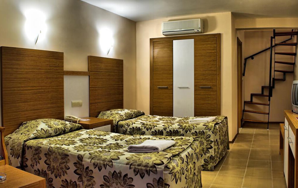 Club sobe nalaze se u bungalovima i veličine oko 22m (pored dva standardna ležaja mogu imati krevete na sprat), kupatilo (Tuš WC i fen za sušenje kose), klima uredjaj, mini-bar (uz doplatu), sef (uz doplatu), SAT TV uređaj, balkon ili terasa; superior sobe nalaze se u glavnoj zgradi veličine oko 25m², kupatilo (Tuš WC i fen za sušenje kose), klima uređaj, mini-bar (uz doplatu), sef (uz doplatu), SAT TV uređaj, balkon; club porodične sobe nalaze se u bungalovima i sastoje se od dve prostorije odvojene vratima veličine oko 35m², kupatilo (Tuš WC i fen za sušenje kose), klima uređaj, mini-bar (uz doplatu), sef (uz doplatu), SAT TV uređaj, balkon ili terasa.