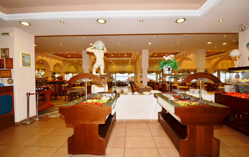 SADRŽAJ: Bar, bar kraj bazena, kafe, dečji bazen, bašta, parking, bar na plaži, recepcija, restoran, snack bar, otvoreni bazen, TV soba, teren za košarku, bilijar, mini-klub za decu, dečje igralište, video igrice, organizacija grčkih večeri, sportovi na vodi.