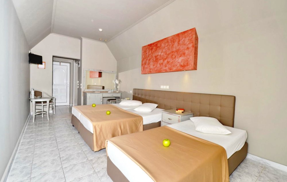 Oko 23m2, smeštene širom kompleksa, u bungalovima i glavnoj zgradi, sa pogledom na baštu ili more, predviđene za 2-4 osobe (dva odvojena ležaja i sofa).