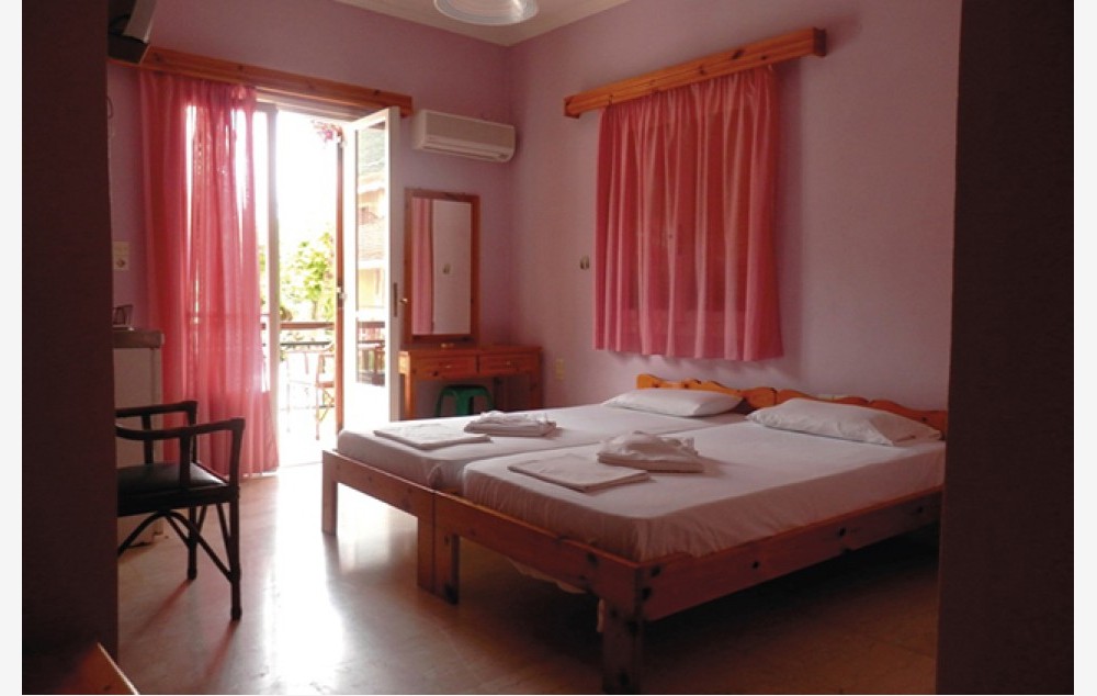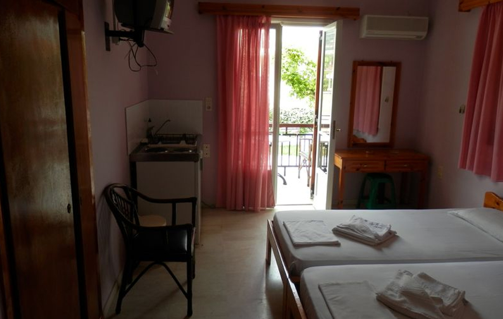 Opis: Svi apartmani se nalaze u prizemlju, i svi imaju direktan pogled na more. Poseduju opremljenu kuhinju, kupatilo/wc, terasu, komarnike na prozorima, TV, WiFi internet, klima uređaj (uz doplatu na licu mesta od 5€ dnevno), dve ležaljke za plažu (po apartmanu), privatni parking i veliku baštu sa roštiljem. U blizini se nalazi glavna ulica sa šetalištem i mnogobrojnim prodavnicama, restoranima i drugim turističkim sadržajima. Preporučuje se za porodice i za miran odmor, ali i kao odlična baza za one koji žele da, sopstvenim prevozom, obilaze ostrvo.