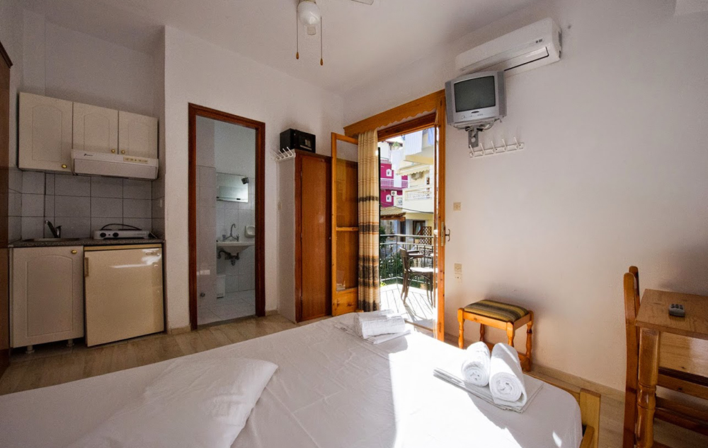 Opis: Raspolaže dvokrevetnim i trokrevetnim studijima. Svaka smeštajna jedinica poseduje opremljen kuhinjski deo, kupatilo/wc, terasu, TV, WiFi internet i klima uređaj (uz doplatu na licu mesta 7€ dnevno).