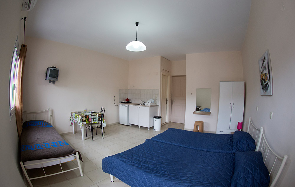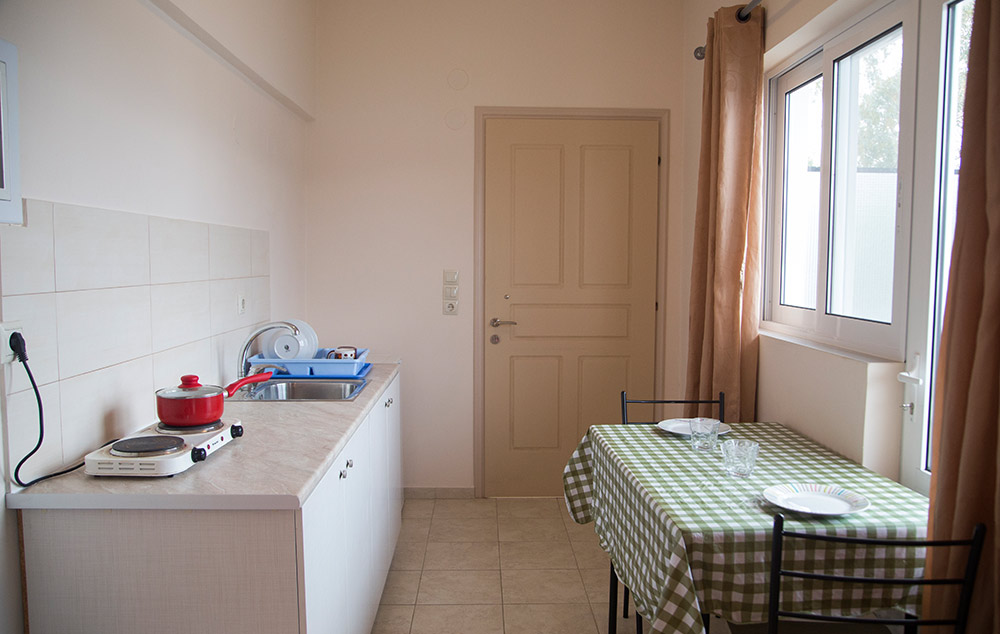 Opis: Svi apartmani se nalaze u prizemlju, i svi imaju direktan pogled na more. Poseduju opremljenu kuhinju, kupatilo/wc, terasu, komarnike na prozorima, TV, WiFi internet, klima uređaj (uz doplatu na licu mesta od 5€ dnevno), dve ležaljke za plažu (po apartmanu), privatni parking i veliku baštu sa roštiljem. U blizini se nalazi glavna ulica sa šetalištem i mnogobrojnim prodavnicama, restoranima i drugim turističkim sadržajima. Preporučuje se za porodice i za miran odmor, ali i kao odlična baza za one koji žele da, sopstvenim prevozom, obilaze ostrvo.