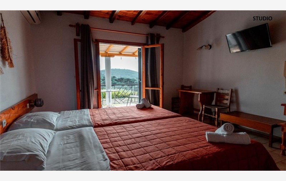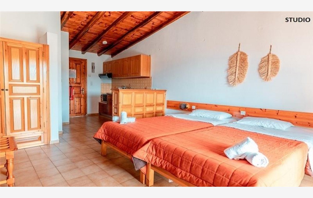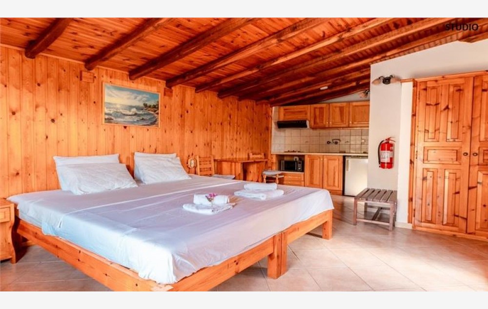 Potpuno opremljena čajna kuhinja, mini frižider, kupatilo (tuš), fen za kosu, TV, klima uređaj, balkon. U zakupu naše agencije su sve smeštajne jedinice (studiji i apartman). U sklopu studija (oko 30 m2) se nalaze 2 standardna ležaja. U studiju se mogu smestiti maksimalno 3 odrasle osobe. Treći krevet je pomoćni. Apartman (oko 70 m2) ima dve spavaće sobe (4 standardna ležaja) i kuhinju u kojoj se nalazi pomoćni ležaj. Iste je opremljenosti kao studio i može da ugosti maksimalno 4 odrasle osobe i jedno dete. Sve smeštajne jedinice imaju pogled na vrt.