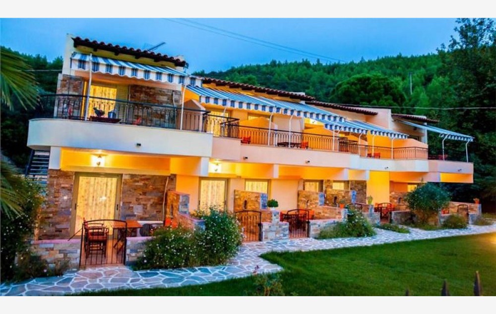 Lokacija: Vila je okružena borovom šumom i mediteranskim rastinjem i predstavlja prijatan i miran smeštaj sa lepo uređenim dvorištem. Grad i luka Skijatos od vile su udaljeni 10km a međunarodni aerodrom 12km. Vila je od autobuske stanice broj 22, sa koje saobraća lokalni autobus udaljena 400 metara. Na svega 300 metara od vile nalazi se jedan od najpoznatijih hotela na ostrvu Skiathos Palace 4*. Preporuka je svim tipovima putnika koji na ostrvu žele da iznajme automobil.